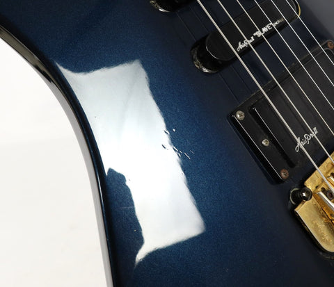 This is an Aria Pro II MA-800 Gemi Taylor's Super MA Metallic Blue Electric Guitar.
