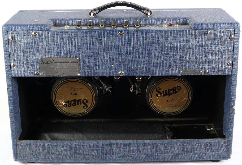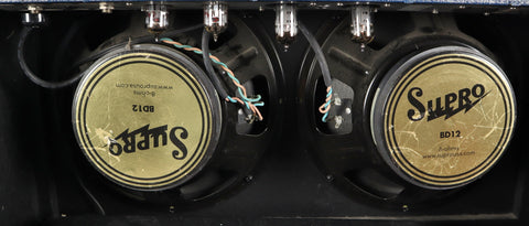 Featuring a pair of 12AX7 preamp tubes and unique 6973 power tubes producing 25w of tonal goodness through 2x12" Supro BD12 speakers.